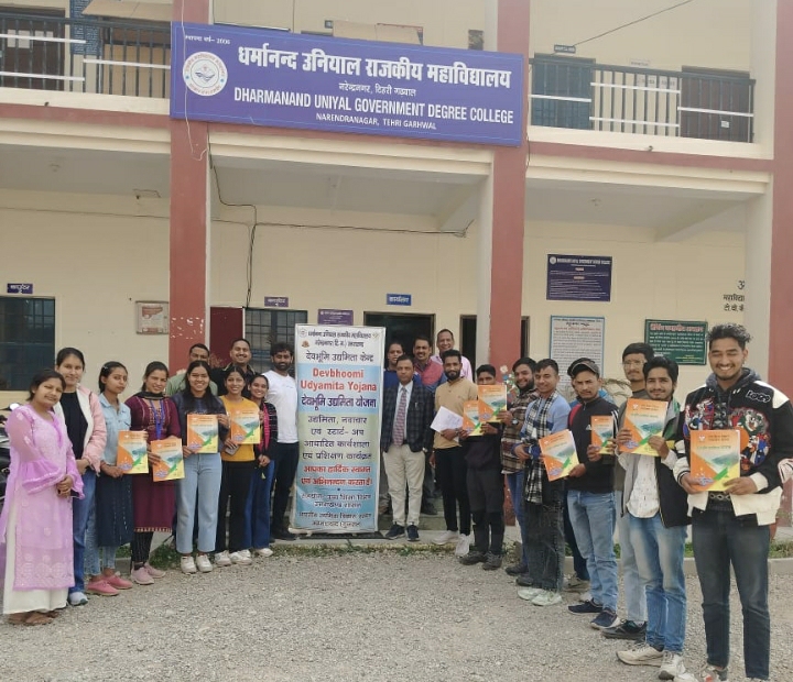 नरेंद्रनगर। धर्मानन्द उनियाल राजकीय महाविद्यालय नरेंद्र नगर में चल रहे 12 दिवसीय उद्यमिता विकास प्रशिक्षण कार्यक्रम के अंतर्गत डॉक्टर संजय महर ने छात्र-छात्राओं को होमस्टे प्रबंधन, इको टूरिज्म, साहसिक पर्यटन की ऑफ बीट विधाओं, टूर गाइड, पारंपरिक सौवेनीर शॉप से संबंधित आजीविका संवर्धन के गुर सिखाए।