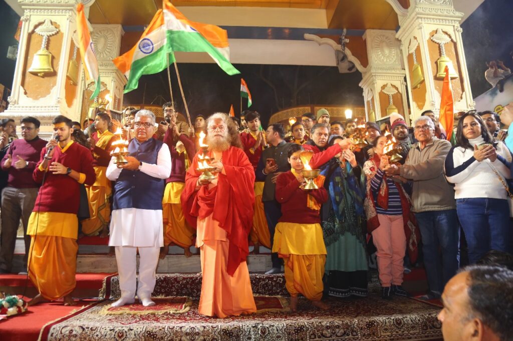 परमार्थ निकेतन गंगा आरती में भारत के छः राज्यों से आये 35 गंगा प्रहरी और 23 घाटों के 36 पंडितों ने किया सहभाग।